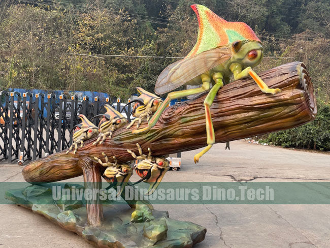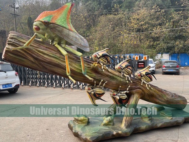 We made this 4 meters long big Animatronic Cicada models, include one atrificial timber pile. One big cicada and five small cicadas as decors for kids park.