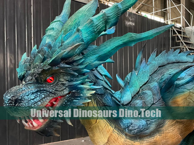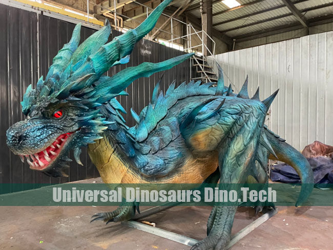 Manufactured Animatronic Flood Dragon model with motions is favourite from the runners of water parks. The green & blue dragon exhibits is excellent decorations for CUBE Water Park, Zhenzhou, China.