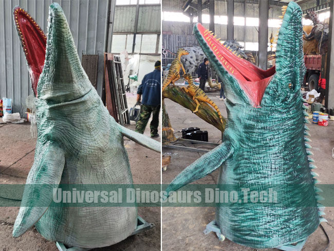 Its 2 meters high big Animatronic Mosasaurus Head model with motions, such moving as mouth opening and closing etc. Its outstanding dinosaur theme decorations and bringing exploration ocean fun there.