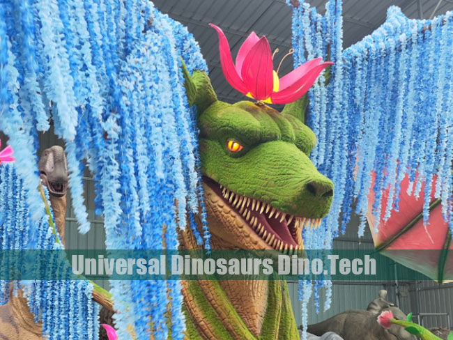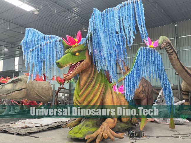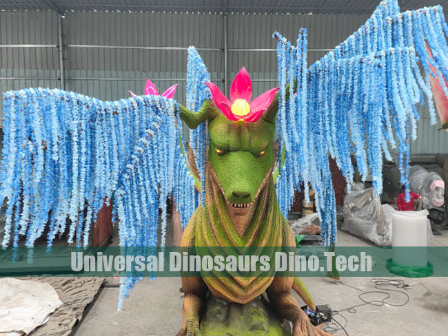 Its 4.3 meters high animatronic dragon model in the factory. The strange dragon model will be outstanding & interactive decorations for Mega Creatures Park. The plant dragon model belong to self-design creatures.