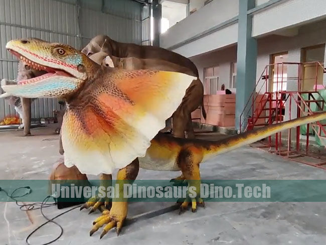 Its 4 meters long large animatronic prehistoric lizard model with sound and movement. It works as water park attraction. Visitors were frightened whilen they saw this large terrible lizard.