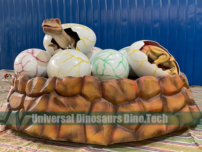 Its 1.4 meter high and 2.7 meters wide animatronics dinosaur eggs decorations at the factory. We made this funny dinosaur eggs equipment for Dinosaur Park.