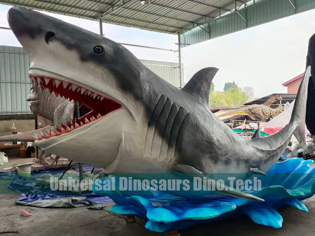 We made this 6 meters long big animatronic shark model for water park decorations. Big shark replica has movements as mouth open & close, fin swaying etc. We also can customize bigger shark model as water park decorations.