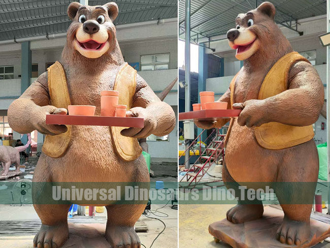 Its 3 meters high animatronic cartoon bear model as attractive decorations of forest cabin paradise. Cute and funny bear uncle model brings drinks for kids. All kids love this cute animatronic bear model.