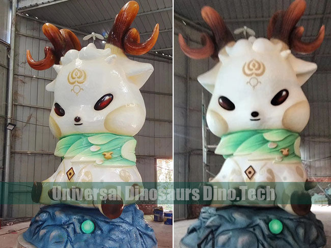 Its 3.2 meters high customized big Cartoon Goat Statue decorations for shopping mall. The large cartoon goat sculpture's prototype is from Shanhai Myth Book. The big animal decorations as mall attraction.