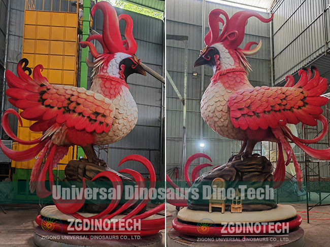 Here is 3 meters high customized big Cartoon Rooster Statue, looked from out of Chinese mythical novel. The large animal decoration was made for mall decorations.