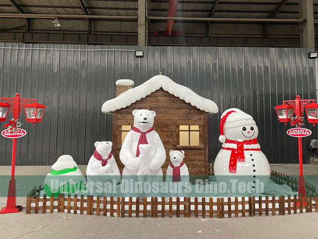Its width 5 meters and height 2 meters decorated items as Christmas Polar Bear & Snowman Decoration. Animatronic polar bear and silicone made snowman model.