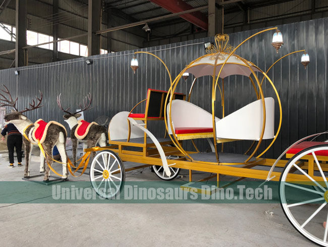 Its themed Christmas animatronics reindeer cart for sale. Two cute animatronics reindeers with motions and one christmas cart decorations for shopping mall. Its classic christmas attractions.