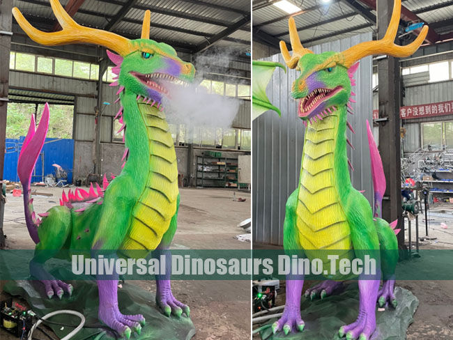 Its 2.5m long and 3 meters high animatronic green dragon replica. Its manufactured inspiration was from Chinese Kylin type. Good decorations for theme park. The green dragon bring wonderful adventure.