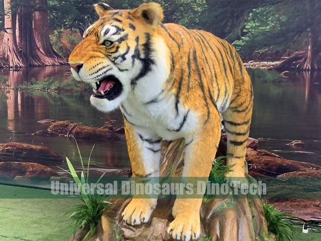 We made one 3 meters long big jungle Tiger model with sound and action. We made this animatronic tiger replica, descending posture, for Chongqing Zoo. Kids are crazy to see this lifelike tiger model.