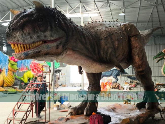 Its 12 meters long animatronics large Carnotaurus model with lifelike motions for theme park decorations. Large dinosaur decorations creates much fun there. The large dinosaur exhibits will be the most attractive landscape.