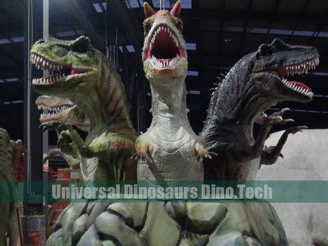We customized one diameter 2.4 meters multi dinosaur heads monster model wtih lifelike movements. All dinosaur heads can move as eyes flash red, mouth open and close. Its 2.4 meters high multi-dinosaur-heads animatronics.