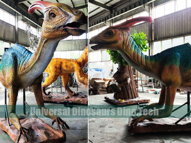 Its 1.5 meter long robot Parasaurolophus head model, that can interact with tourists of the dinosaur park. The robotic dinosaur head exhibits brings much fun at the dinosaur park.
