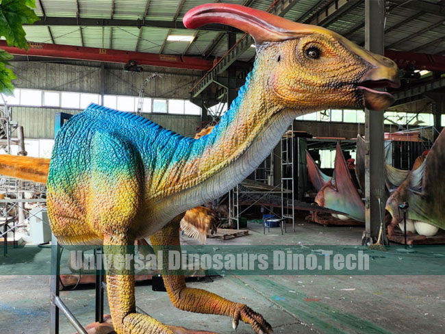 Materials: The Parasaurolophus head model is made of silicone, sponge, steel, motors etc.