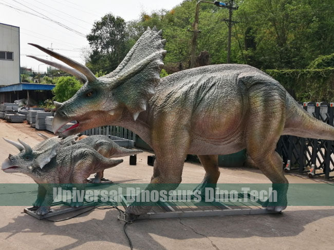 We built three animatronic triceratops models! Its Mom-triceratops animatronics and 2 baby triceratops models! Excellent decorations for Quanzhou Dinopark.